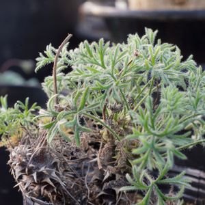 Pelargonium hyokkorix 細かく分岐する葉にトリコームをまとい、光を乱反射させ温室内で一際白く輝いている。 あたかも自身で発光しているかのように。 今一番好きなペラルゴニウムです。...なんて一番がいくつもあるんですが💦 名前の響きもポップ&キャッチ―で、この種の格上げ(自分基準)にだいぶ貢献しています。