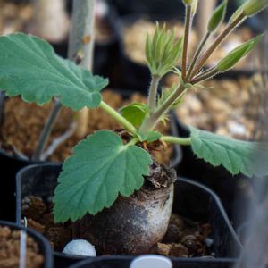 ペラルゴニウムの奥深き世界。 トリフォリオラーツム。 葉が上に連なって展開する様子がおもしろい。 葉のトリコーム(微毛)が見目柔らかな印象にしてくれる憎い葉。 そして何より地中に隠れた塊茎が少しずつ大きくなるのが嬉しいのです。 埋めた方が調子がよく育つのも早いので掘ってはにんまり、掘ってはにんまりを繰り返しながら楽しむと良いでしょう✨ 奥深きマニアックプランツ。