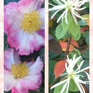 ,11/22(木)⑪ 2018寄り添って❷ 山茶花 トキワマンサク 山茶花はマンションの庭に立派な鉢植えの山茶花がドーンと置かれてます( ^艸^*) トキワマンサクの白い花は職場近くに2輪だけ勘違い咲き。春になったら沢山咲いてね。葉っぱも紅葉してきてます*。٩(ˊᗜˋ*)و*。