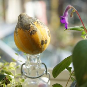 ハロウィン🎃も終わったのに カボチャに顔が浮かび上がった よく見るとまつ毛も口もある😥 寄せ植えのストレプトカーパス サクソルムが咲き始めた😄