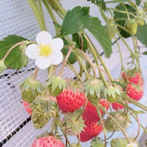 イチゴの日😍 あえて、収穫後の緑のイチゴさん達です😆 今日は、アガベが、到着するよー😙楽しみ😊