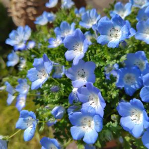 こんばんは😊 「みどりの日」の今日は五月晴れ☀ きれいな青空が広がりました💙 ①②③うちの🍀ネモフィラ🍀も青空に負けないくらいのブルー🩵 ④残念ながら見頃が終わっていた🍀藤🍀で有名なお寺 ⑤お寺から近いジェラート屋さんから見た🍀菜の花🍀と富士山 素敵な青空つながりでした💙🩵