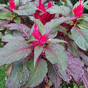 こんにちは👋😃 ごめんなさい🙏連投です😅 台風の影響で先ほどから雨が降り始めました☔ 先ほどと種類が違う🌱鷄頭🌱が出ていましたので…😊 昨年この場所に出て来た鷄頭は *葉鷄頭*でした😅 うちの植物は自立心旺盛です💦 知らぬまに立派になって💦💦😅