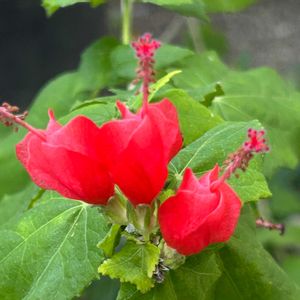 フヨウより花が小さく、これ以上花びらは開かず閉じたままのお花の❤️ヒメフヨウ❤️です🤗💕 ターバンのように赤くねじれた花姿が面白いですね🥰💞 🏷真っ赤な火曜日に参加します😊