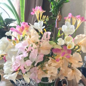 朝陽を浴びて春満開 フリージアとスイートピーの香りがたまらない♡また来年までもうそろそろお別れです。