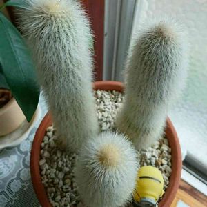 本日は老楽(楽天カードマン(💳ω💳))さんです😎 老楽さんはダイソーにもごく稀に 出てくるので見かけることもあるかと 思います(*´ω`*) アレオーレ(毛)に水が掛かると 汚れるので水やりの際は鉢の淵から 汚さないように水やりします😎 似たフォルムで幻楽さんもいるので 毛もくじゃらが気になる方は 見つけたら触ってみてください。 柔らかいようで痛いです😎👍 原産地では、高さ7mに達するらしく 幼株では毛は粗く肌が見えるが 古い株では毛は体に巻き付くように 発達し、間から褐色の刺が突き出す。 老楽は冷涼な気候の季節に 成長するらしく栽培的には、それほど気難しい訳ではなく、毛に覆われているため 状態が見極めにくいのと成長期が掴みにくいみたいです。 サボテンは最近、毛もくじゃらシリーズが 気に入ってます(💳ω💳)