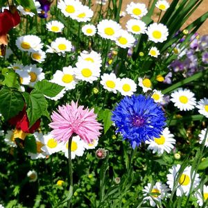 河川敷に広がる矢車草💜💙 ブルー💙が好きですが、白や紫、ピンクも。 菜の花の後を継いでます。