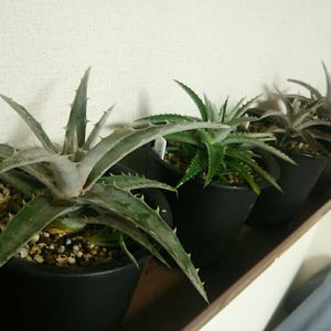 大雪予報のため、避難してきました、dyckia兄弟! ぬくぬくしたからなのか、あちらこちらから、子どもたちがニョキニョキ出てきました! 結果オーライ(;・∀・)ですかね・・・