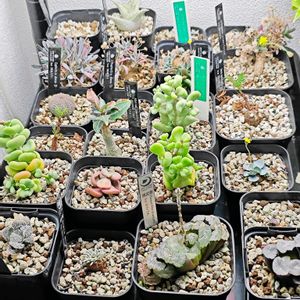 ケラリア・ピグマエア(実生) 夏の休眠超えてこんな感じです 実生はそこまで日差しガンガン当ててはおらず、大きめの株はガンガン当てて丸葉化させてます 根は土に埋めた方が太りますね〜