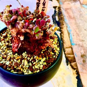 多肉新年会戦利品 2/15 ケラリア ピグマエア 小型の塊根植物。 昨年の9月に植え付けされた株でしっかり発根済み。2〜3年は葉の剪定はせずに、芋を大きくさせるためにたっぷりと日に当てて作り込みます。