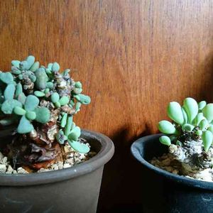 冬型コーデックスで人気のピグマエアですが、 中々に徒長しやすいのでお気をつけて。 私は水遣りは月に一度程度。 表土を軽く濡らす程度にしています。