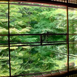 京都の新緑 2/2枚目 瑠璃光院の青もみじ🌿 以前にこちらの紅葉を投稿したことがありますが 青もみじのこの季節も行ってみたかったので……… 願いがかないました💚 紅葉とはまた違った趣き✨ 私はこちらが好きかも•*¨*•.¸¸♪*゚❊* 下半分は机に写りこんた青もみじです(^_-)-☆ こちらにも🏷五月ミドリン✨