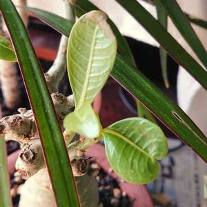 アデニウムの葉っぱ🍃が最近、写真みたいに先っぽの方から枯れていって落葉するんです😭それでそんなふうにしてどんどん落葉していって今はあんまり葉っぱありません💦どうしたら良いですか⁉️