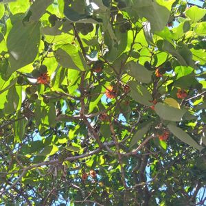 面河川から四万十川、宿毛市、西予市、大洲市を経て松山へ。 バスの車中からバショウが沢山みられたが、撮り損ねた。 関西で見られるのとはちょっと違う木たちもあり、興味深かった、 ①ホルトの木 ホルトノキ科の常緑樹 オリーブと似た実を付けている。 ②コウゾ クワ科 コウゾ属 古くは紙の原料となった ヒメコウゾとカジノキの雑種とされる。 ③キミノクロガネモチ モチノキ科の常緑樹 黄色い実は初めて ④⑤ムクロジ ムクロジ科 ムクロジ属 実が落ちているのを教えてもらい、急な階段の上の木から落ちているのをのを確認したが、見に行く事は断念。