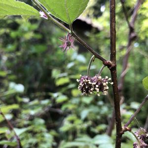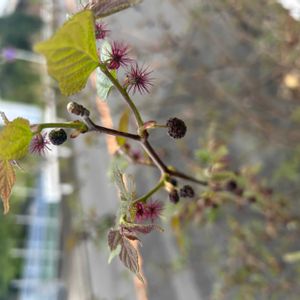 ヒメコウゾ(姫楮) クワ科 雌雄同株、雌雄異花の落葉低木 昨年この木を見つけて花を楽しみにしてました🤗 約1cmほどの小さな花で近づかないとわからなかった! 雌花はトゲトゲのウニみたい😳 顕微鏡で覗いたウィルス⁈空に上がる花火? 暗紫色の長い毛は花柱だそうですが見ればみるほどおもしろい🦠🎆😊 雄花は球状になるそうですが、こちらのようにこんなに垂れ下がることもあるのでしょうか?🤔