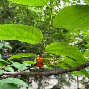 先週の土曜の撮影です。 クワかと思いましたが、楮というご指摘をいただきました。 桑だと果実はもう少し大きくて黒っぽくなります。 この辺りの葉は桑とは違うのですが、下の方にあるものは桑に似た形状です。