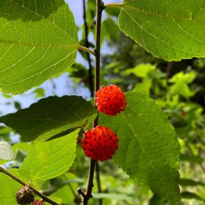 コウゾ 楮 ? クワ科 コウゾ(カジノキ)属 雌雄異株 ヒメコウゾとカジノキの雑種 栽培種 落葉低木 和紙の原料 こんばんは💕 面白い葉を見つけました💚 くびれてる葉と丸い葉が一つの枝に💓 場所や環境で形が変わるようですが、若木の葉はくびれていて樹齢を重ねると普通の丸い葉になるようです💚💚💚 虫に食べられないように戦略かしら⁉️💚 万葉集にも出てくるようで、中国からヒメコウゾとカジノキの雑種が紙と共に入ってきたようです💚 今では野生化したのと栽培種とがあるようです💚 日本には在来種としてヒメコウゾはあるそうです💜💚 ヒメコウゾは結実しますがコウゾは殆ど結実しない💚 伊野町の里山を歩くと薄桃紫色に煙る雌花が咲いてる頃に出会うと綺麗でした💜💗 伊野町は和紙の町です💜💗 雄花は黄色💛 名前の由来は神に献げる布、神麻(こうそ)から💚💜💗