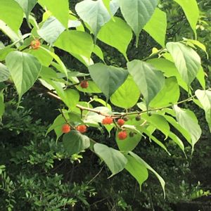 田舎の散歩道で見つけました。面白い形の実がついているこちらは何でしょうか
