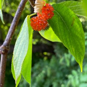 🎶コウゾ🎶 これは何??🤔🤔🤔 まっくろくろすけみたいな不思議な⁉️花⁉️がぶらさがっていました( ☆∀☆)🌟🌟🌟 はじめまして😊💞 樹皮の繊維は和紙の原料になるそうです❇️