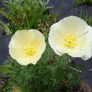 くしゃくしゃの白い花 これで満開みたいです。 ヒント ①種から育ちました。 ②夏の花です。 ③蔓(ツル)系です。 ④バックの網がヒントかな? 正解は“朝顔”でした。(^o^;)