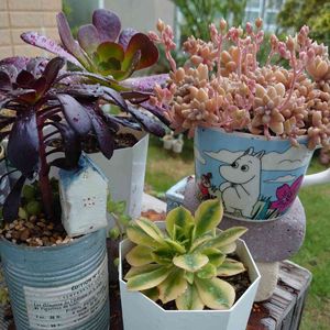 |ヾ(。`・ω・)o|Ю コンバンワ!!! 🏷,9日は黒法師の日 🏷,ムーミンの日 🏷,子株の日 トリプルで参加させて下さいね🍀 11月に投稿したムーミンの鉢の姫秋麗は今はこんな感じです この鉢は花芽をカット✂️してなくて〜🌼を咲かせちゃいます((●゚ν゚) アエオニウムは全部ダイソー産 黒法師と カシミヤバイオレットσ(∵`)? もう1つはスターバーストか サンバーストσ(∵`)? どなたか詳しい方教えてください(⋆ᵕᴗᵕ⋆).+*ペコ ⬇名前が分からないけど〜子株が3つできました🙆 これからの成長が楽しみです٩(๑´꒳ `๑و)イエーイ💕💕