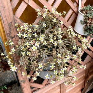 多肉ちゃん(こう呼びたくなるのわかりました)4/7に挿してもらった姫秋麗に星形の花咲きました キウイも、花みたい😍姫秋麗とキウイ