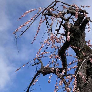 鉢植えの枝垂れ紅梅 以前、地植えしていた枝垂れ紅梅が枯れてしまった(カミキリムシの幼虫の芯髄の食害)。 新たに、鉢植えの枝垂れ紅梅を購入しました。 やっと、咲きだしました。