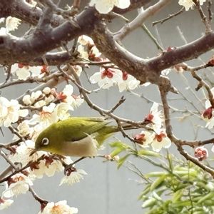 近くに寄っても逃げずに夢中で梅の花をつんつんしてました♪