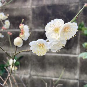 青白い梅の花 このこのお名前は ˚*.꒰ 月影 ꒱.*˚ 江戸時代から続く名花で香りが強い 花弁は丸く一重の抱え咲き 中小輪
