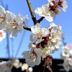 今日のお花 『梅の花』 青空に輝く白い 『梅のお花』がとても綺麗でした。今年は梅の実が沢山出回って欲しいなぁ 『梅干し』と 『梅酒』に 『梅ジャム』を作りたいですね。👍💕🎵