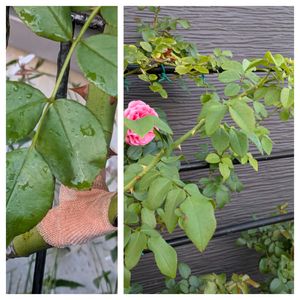 マリーヘンリエッテもつるバラらしくシュート乱立、伸びまくり😃巻き巻き女王の房咲きはそりゃあ重たくて💦弧を描いて枝垂れて咲いてる姿はまるでピンクのミサイル⁉️ドリル⁉️下を通る度に頭を小突かれる🤣 シュートが多すぎ、長すぎで冬剪定どうしようかと今から悩む🤔このフェンスには収まりきらない😓思い切ってベイサルシュートだけ残して古枝とサイドシュートは無くすか⁉️🤔