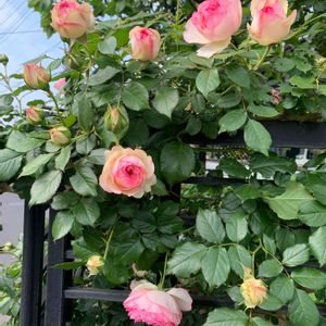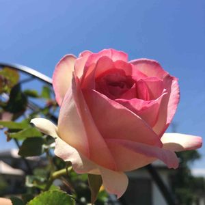 青空に似合う薔薇です💕 アーチに絡ませましたが、上手く咲くか心配です😅