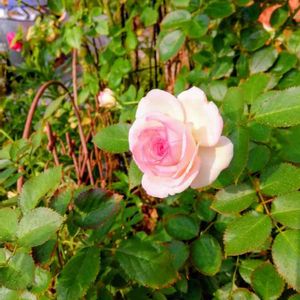 まだ背丈が低いですが、ピエールドゥロンサールが満開です。やはり花付きは良好✨