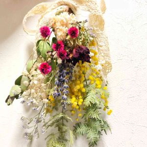 たまってきたドライフラワーでスワッグ作成😊楽しい時間🎵