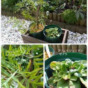 1️⃣〜4️⃣セルリア ブラッシングブライド 自由にのびのびさせていた枝ですが、 移動(🌃だけ🏡)の回数が増えてきたので ポキっとやらないように支柱をたてました🧤 (おまけ) 5️⃣プリムラ ジュリアン ゼブラ 猛暑だったけど、夏越しできまして🙌 シマシマがのぞいてきました🦓♪