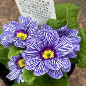 ❁. 。プリムラ ジュリアン’ゼブラ’。.❁ 花弁に濃い紫のストライプが入る 珍しい花色のプリムラ🩵 濃淡がはっきりしているので しましま模様がくっきりとでます👔 名前の通りシマウマみたいですよね🦓 ベースの淡い色は 幅が広く1鉢1鉢ちがった魅力があります✨ 黄やピンクなどの色鮮やかなプリムラと違って お洒落で大人っぽい印象を与えてくれます𓍯 プリムラは寒さに強いので 冬のお庭の定番商品です❄️ 春ごろまで長く楽しめるので ぜひ見かけた際はお手に取ってみてください*. *育て方* 日当たりのいい場所を好みます。 水やりは土の表面が乾いたらあげてください。 冬場は霜が当たらないように注意してください。