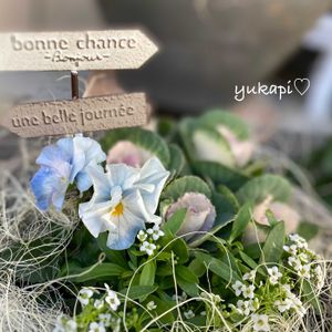 シエルブリエさん🩵 今年はほんのりブルーの フリフリさん(〃ω〃) 優しい色合いの葉牡丹と 寄せてみました♪ 2枚目のゼブラさん🦓 これは安定の必須٩( 'ω' )و シマシマが可愛いですね💙