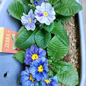 🌿プリムラジュリアン ゼブラ🌿 前から気になっていたこの子💜💙💚 花びらの模様がシマウマ🦓と似ているので『ゼブラ』と名づけられたんですって😆😄 チューリップと一緒に植え込みました♪