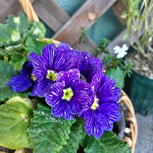 こんにちは〜😊 ベランダで プリムラジュリアン ゼブラが咲いています💙🩵