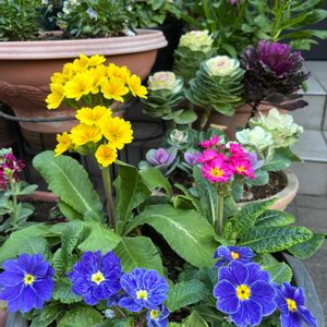 ベランダのプリムラ3姉妹💜💛🩷 ❶ 大好きな薄紫 プリムラジュリアンゼブラ💜 ❷ 鮮やかなイエローで元気いっぱいプリムラジュリアン💛 ❸ ジュリアンとは別にマラコイデスも仲間入り、ピンクが可愛い🩷