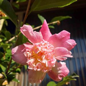 山茶花 丁子車(ちょうじぐるま) 次から次へと咲き出しました🤗 この前の投稿より、だいぶ赤🔴が薄まってきました✌️ 山茶花にしては珍しい唐子咲きなのがチャームポイントですね😘