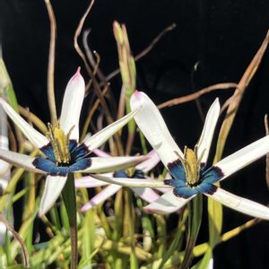スピロキシネ・カペンシス ホワイトです スピロキシネの中では唯一入手難易度が高くないので、この白花弁にマットな黒紫のブロッチを見かける機会もあると思います 和名がついていて、星咲きアッツザクラというそうです 普通のアッツザクラと同じキンバイザサ科ですが、あちらは確かロードヒポキシスなので異なります