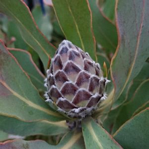 プロテア ピンクプリンセス すこーし色付いてきた。 このままいけば開花までは行けないにしろいい線まで行きそうです。