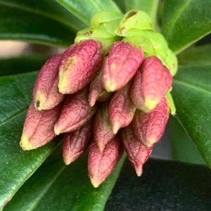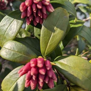 【沈丁花】《ジンチョウゲ科》 🏷金曜日の蕾たちに参加します❣️。 我が家の沈丁花さん 開花までもう少し🎶。 香り高い花を咲かせる春の代表的な樹木。春の沈丁花(ジンチョウゲ) 夏の梔子 そして秋の金木犀を合わせて 三大香木と称されます。 「沈丁花」という名前は、花の香りが沈香(ちんこう)に似ていることと、十字型の花が丁子(クローブ)に似ていることに由来しています。 2021.2.10