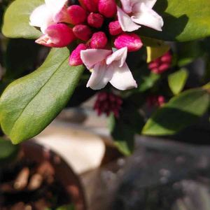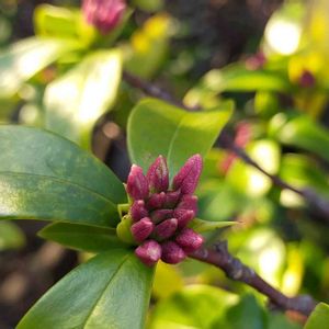 咲分け沈丁花の蕾。1株から赤花、白花、絞り花などが開花します!