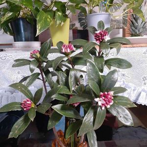 挿し木でいただいた斑入り葉の沈丁花少し綻び始めて来た~🎵 蕾の濃いピンクも可愛いけれど💓この色は初めてだからワクワク待ってます~🎵