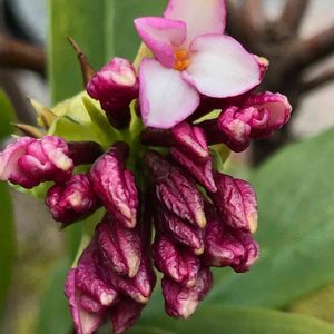 沈丁花 強風の中、一輪だけ咲いてました😊 一輪だけでも良い香りです😊💕 花言葉・不滅、不死、栄光 ジンチョウゲ科 ジンチョウゲ属