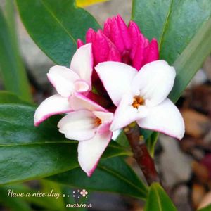 🤍白い沈丁花🤍 赤と白の沈丁花が、挿し木から大きくなりました