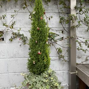 今年もコニファーに飾りつけ🎄 数年前に20㌢くらいで購入したものが今では1mくらいになりました。 皆さんも楽しいchristmasをお迎えくださいませ♡