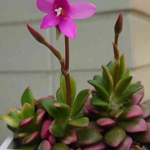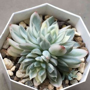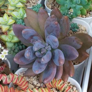 セデベリア属 紫麗殿🌱 晴れた日には綺麗に撮れない子なんで、天気の悪い日🌂☁の今日の一枚✌ パキベリアとして売られてることも多いんですけど、セダムとエケベリアの交配種で「セデベリア」です☝️お父さん(アフィニス)譲りのぶっとい立派な茎がチャームポイント🤭💕 この子は一昨々年の11月にアソートをお迎えした中に入っていた子で「見返り美人」という名札だったので「月花美人」というタグでずっと育ててました💦 この子の色がめちゃくちゃ気に入ったので、別の時期に「月花美人」という名札の見切りの子を迎えて育てるもなんか違う😅 ということで、今年の3月から「紫麗殿」というタグに変更しました😆👍 「たっちんの紫麗殿」タグをタップでこの子の生長記録のみどりのまとめが簡単に見れます😊🎵